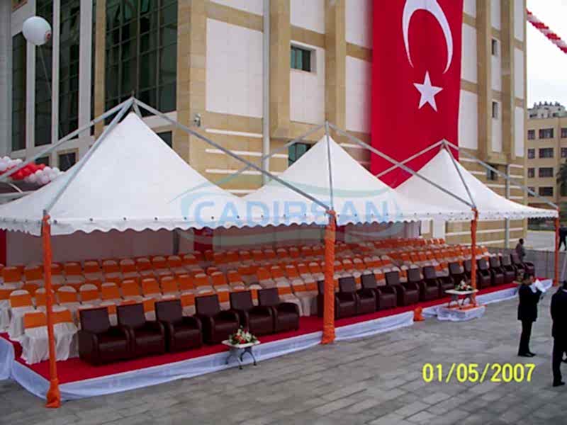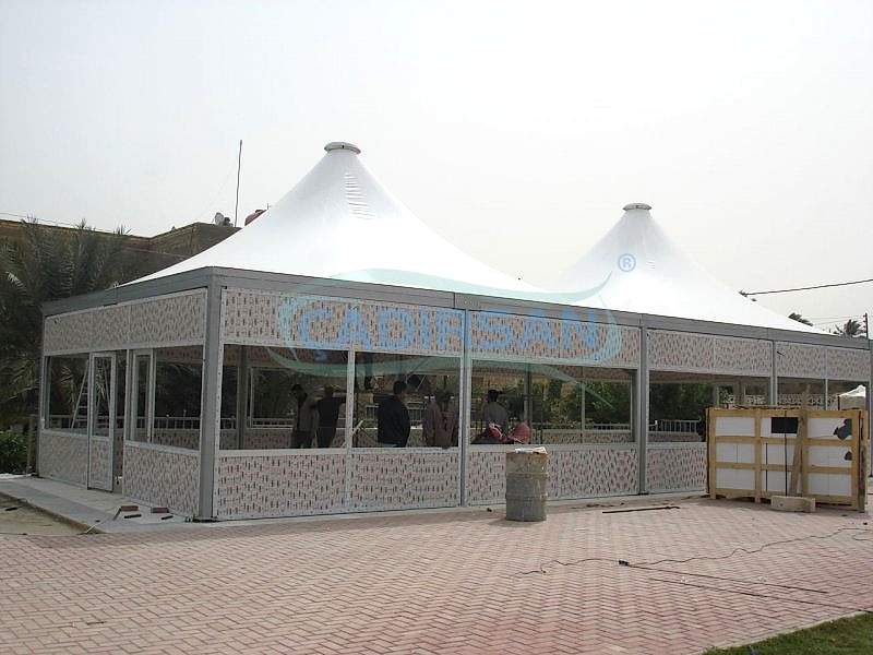 Bu sistemler membranın kare formundaki çelik kafes taşıyıcı üzerine gerilmesiyle oluşur. Çelik kafes taşıyıcı sistemi yan yana birleştirerek sınırsız bir alan oluşturmak mümkündür. Ayrıca bu sistemin merkezinde herhangi bir direk olmaması kullanışlı bir ortam sağlamaktadır. Bununla birlikte daha az ankraj alt yapısı gerektirmesi de sistemin farklı zeminlere kolaylıkla kurulabilmesini sağlamaktadır. Gazebo sistemi farklı iklim koşullarında dört mevsim kullanma imkanı olduğundan, cafeden araç parkına kadar geniş bir kullanma alanı vardır.
