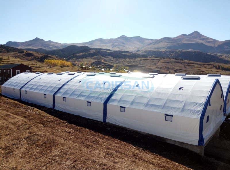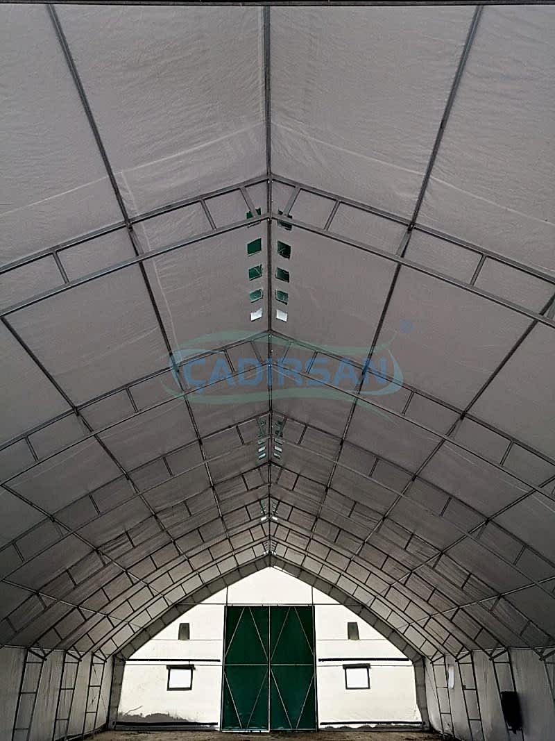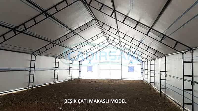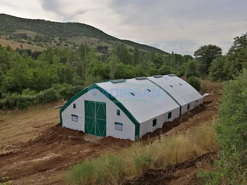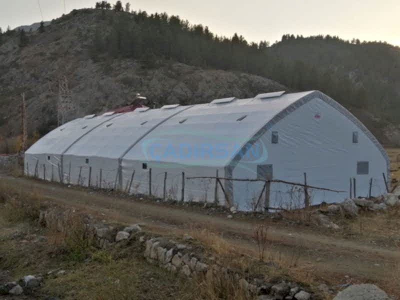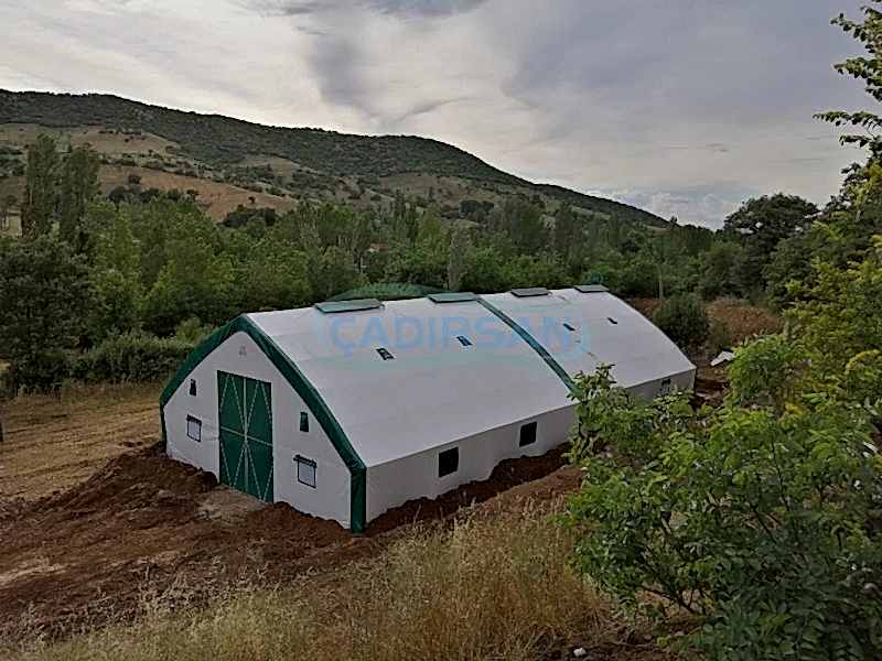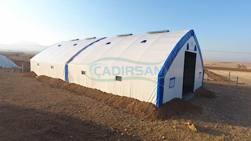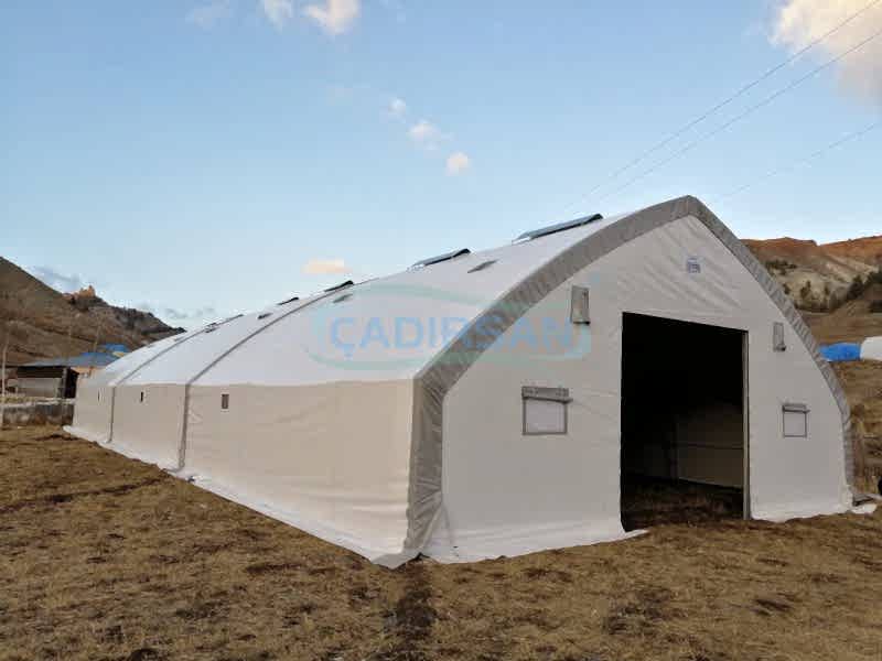 Hayvan barınaklarımız, müşterimizin kullanım amacına göre, hangi şehirde kullanacağına göre (şehrin iklim koşulları nedeniyle), içinde bulunacak hayvanların türüne göre, ve müşterimizin ebat olarak isteklerine göre özel olarak imalatı yapılmaktadır. Çadırlarımız uyguladığımız yalıtımlar sayesinde içinde bulunan hayvanların sağlıklı bir şekilde yaşamasını ve verimliliklerini artmasını sağlar. İskeletimizin kullanımı ömürlüktür. Brandamızın ömrü ise 15 yıl a kadar dayanıklıdır. Bu çadırlarımızda iskelet yapısı ekonomik borulu ve makaslı profil olarak müşterimizin isteği doğrultusunda tasarlanabilir. Ürünlerimiz ülkenin her noktasında büyükbaş hayvan barınağı, küçükbaş hayvan barınağı ve kanatlı hayvan barınağı için uygun olup hayvanlarınız için en uygun yaşam ortamı sağlanır.
